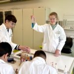 Die SekundarschülerInnen des MINT Profilkurses (Jg. 9) haben sich im „Teutolab Chemie“ der Uni Bielefeld ausbilden lassen, um mit Grundschülerinnen und Grundschülern Experimente zum Thema „Rund um die Zitrone“ in den Räumen der Sekundarschule durchzuführen.