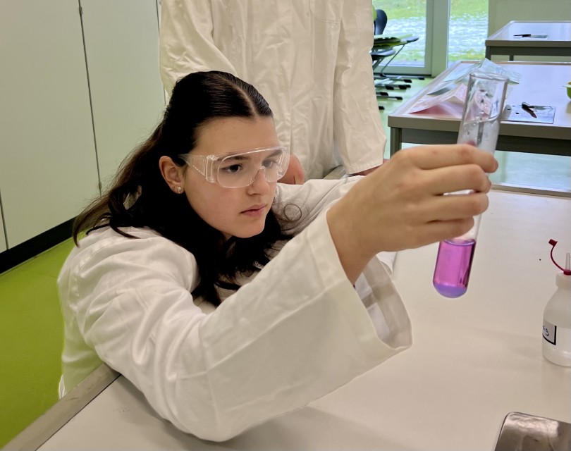 Neugierig und mit viel Freude haben die kleinen Chemiker unter der Anleitung der SekundarschülerInnen im Säurelabor mit Rotkohlsaft experimentiert, im Duftlabor mit Orangenschale „Blitze“ erzeugt und im Zauberlabor Geheimschrift aus Zitronensaft sichtbar gemacht. Ein rundum gelungenes Projekt für beide Seiten.