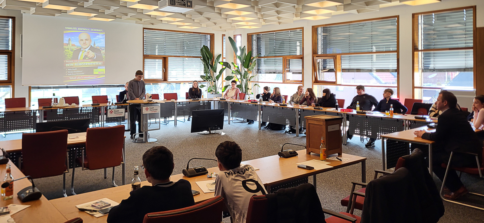 Die 9b übernimmt das Rathaus beim Kommunal-Planspiel.